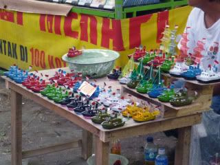 Basically this lively market of sorts is a mix of a make-shift cobbled-together mobile funfair together with make-shift stalls peddling cheap toys and other assorted amusement items. ![]() ![]() ![]() The market ![]() horse carriages ![]() ![]() Coloured and painted hermit crabs! This was sold all over the place, apparently the locals here have some sort of hermit fetish of some sorts. These hermit crabs have baby faces painted on them with bright colours. ![]() ![]() ![]() Painted hermit crabs for sale. Should I keep one as a pet? 5,000rp ($0.80) for 3 ![]() ![]() ![]() ![]() "Fright" house ![]() ![]() ![]() ![]() ![]() ![]() Must be very popular with kids. ![]() ![]() ![]() ![]() ![]() ![]() Ice cream for 2,000rp (S$0.28)!! ![]() ![]() ![]() ![]() street food ![]() ![]() ![]() Hand-made soft toys. ![]() ![]() Very pretty sunset. Walking through the market, I chanced upon a “manual carousel”! ![]() ![]() This "manual" ride is powered by enthusiastic and very acrobatic young men! No machinery or powered drives required, these guys use their gymnastic-like momentum to turn and make the whole ride move. Check out the video below! ![]() Local folklore said that if you can walk through the two banyan trees blindfolded; any wish will come true.. ![]() Traditional steam power boats! ![]() Old-school heat-powered toy boats. ![]() ![]() ![]() ![]() ![]() ![]() ![]() ![]() ![]() ![]() ![]() ![]() ![]() Fuzzy furballs on sale. ![]() ![]() ![]() ![]() ![]() ![]() ![]() ![]() ![]() ![]() ![]() Before long.. night falls.. =) |