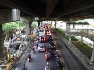 Contrary to the believe, even though drivers honk at pedestrians, drivers do actually slow down for pedestrians and jaywalkers, even then the roads are very dense with vehicles, crossing streets are near suicidal but an essential day of life for all Jakartans. On many busy streets there are no pedestrian crossings, so it's best to latch onto a local and follow them as they weave their way through the endless flow of cars. Muggings do occur, especially on overhead bridges, and can happen even in the daytime. Because TransJakarta busway bridges provide a somewhat de-facto overhead bridge at most roads, dedicated pedestrian overhead bridges are rare and often in very poor and neglected disrepair, sections of bridges are often missing, corroded sections and fallen branches are typical and steps are uneven at best. If you use pedestrian bridge, watch out for shaky steps and holes, and motorcycles and bicycles that often use the bridge illegally, it’s probably safer to jaywalk across the road. On the streets. ![]() ![]() ![]() ![]() Typical sales on the streets by peddlers on foot. ![]() Cigarettes anyone? ![]() Intricate TransJakarta entrance and overhead bridges. ![]() ![]() This pitiful sight is abundant at most major transportation nodes. ![]() ![]() Warung Kecil's on the street or also known as "lima kaki" or 5-legs. ![]() ![]() ![]() Yes it can get really loud on the streets, up to 100 decibels with all the honking. ![]() Typical traffic, (view from Transjakarta bridge) Whilst I’ve written a bit about the transportation in Jakarta, I am not yet fully au fait with the intricacies of Jakartan travel, and have had incidences of having to bail out suddenly only to be stuck in the middle of the road. Most of all, use common sense, just as you would in your own home country. This sums up the end of my fourteen-part mini-series on “Transportation In Jakarta”, hope you enjoyed reading it as much as I had writing about it and I hope it helps a little in planning your travels in Jakarta. |