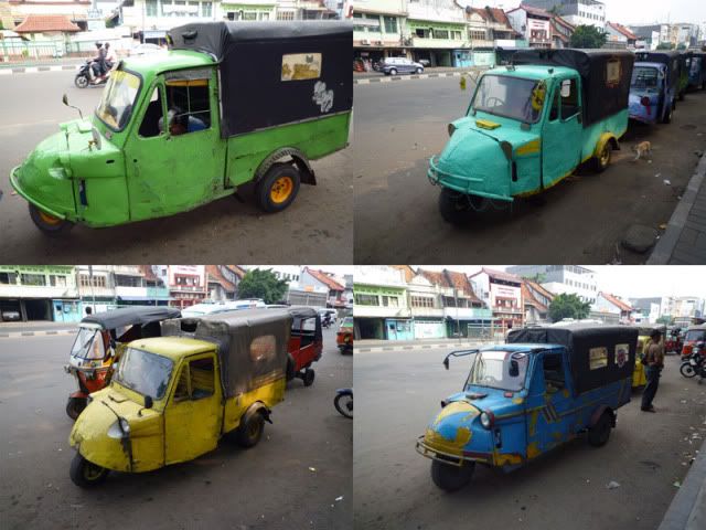 Another noisy little neighborhood vehicle is the bemo, whilst not as loud as the Bajaj, the Bemo is used for local transportation in limited areas in Jakarta. A cute little beetle-like vehicle that I’ve come to like due to it’s rather cute name. B-E-M-O. Bemos operate like mini Mikrolets, not Bajajs and can barely sit 6 people comfortably (whilst the Mikolet can usually squeeze eleven Jakartans at the back). They are even rarer and harder to figure out than a Mikrolet. Originally brought to Indonesia by the Japanese government as part of a disaster relief package in 1962, the vehicles were never manufactured in Indonesia in as great a number as bajaj or becak. Bemos can be found in and near Benhil, Tanjung Priok, Manggarai, Kramat Jati and other areas outside Jakarta. ![]() ![]() ![]() ![]() ![]() Much much smaller than an Angkot ![]() ![]() ![]() ![]() ![]() ![]() Bemos for everyone! |